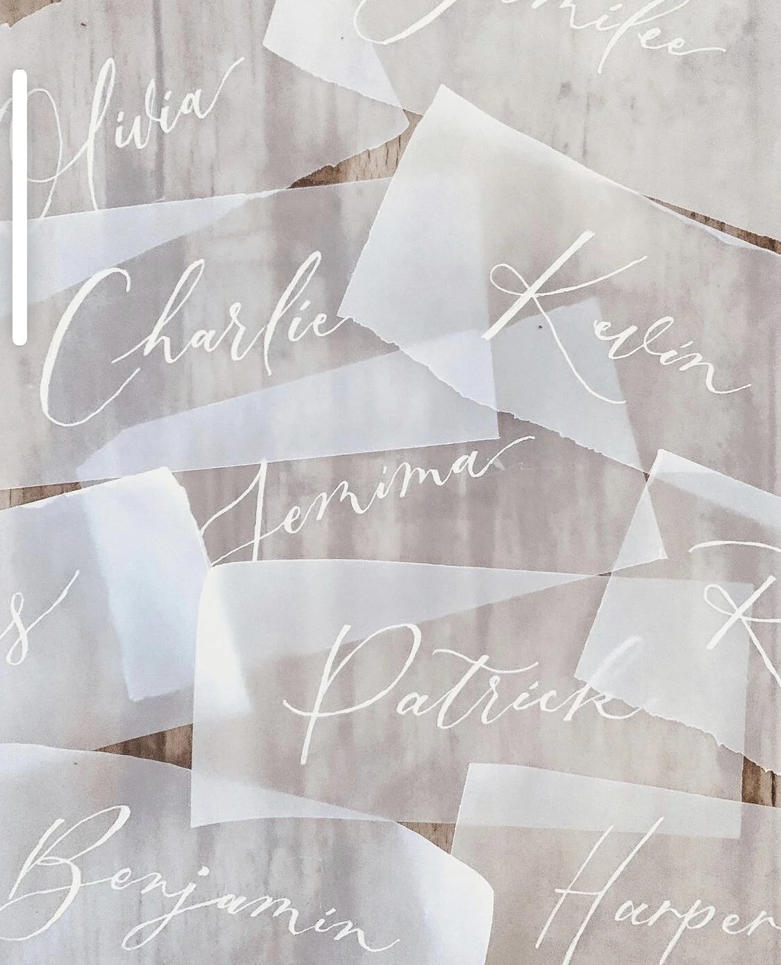 I do! I love place cards because they can be done on so many different mediums, like acrylic, or wood etc. I’m currently working on a project using brown leather coasters as place cards, which is working out really well! I am writing the names on them with white ink