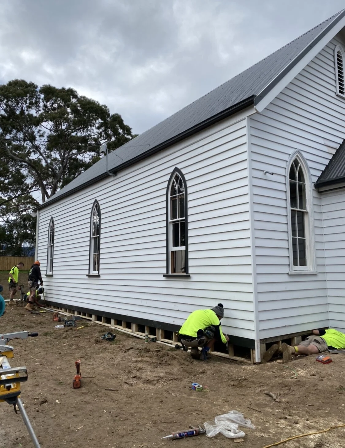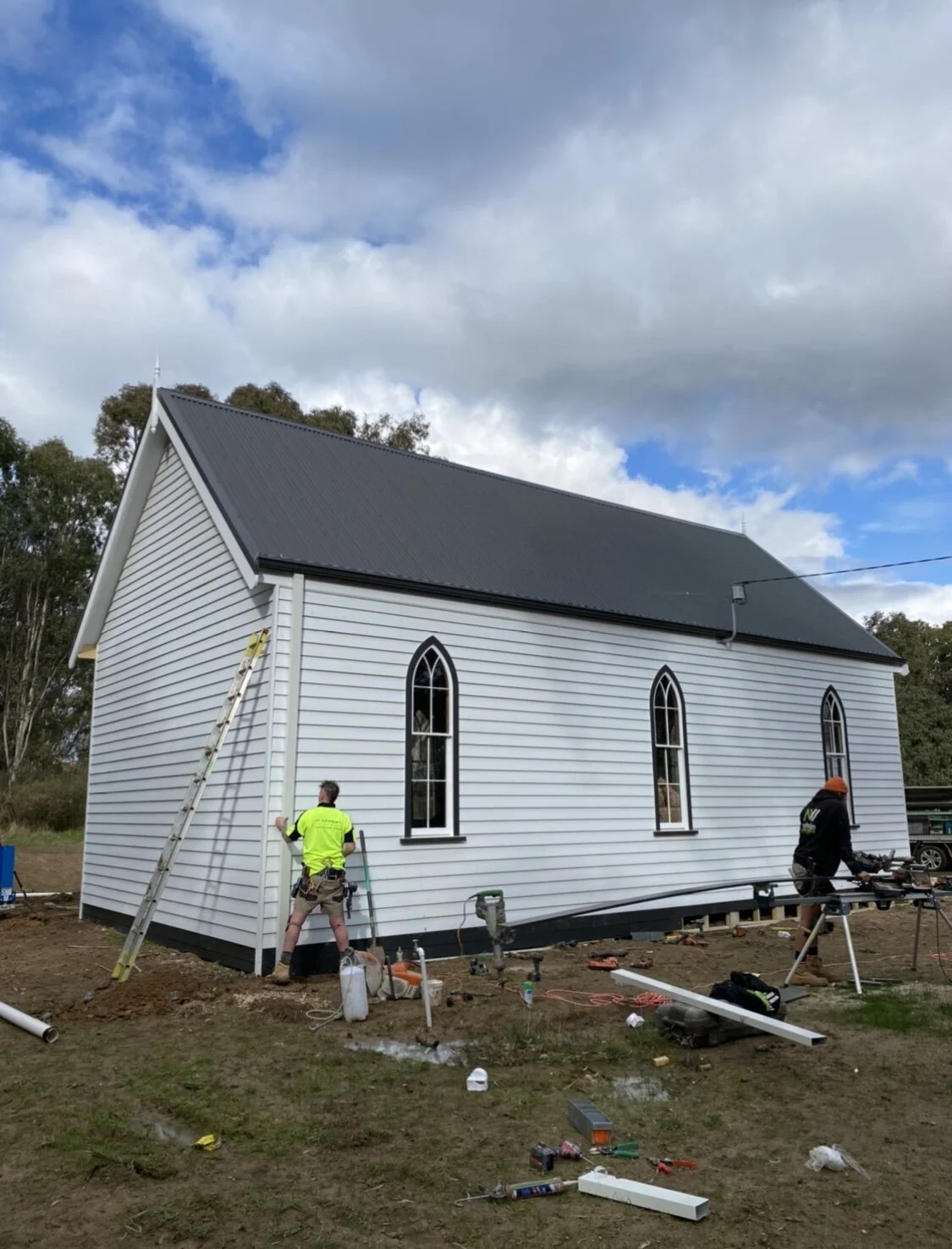 Due to the spouts being pretty much non existent the west wall was in bad shape with weather damage, so the 3 windows on that side were replaced and the joiners at Ludbrooks in Ballarat did an incredible job replicating the old ones! Anyone looking to do custom timber windows check these guys out-the craftsmanship is incredible.