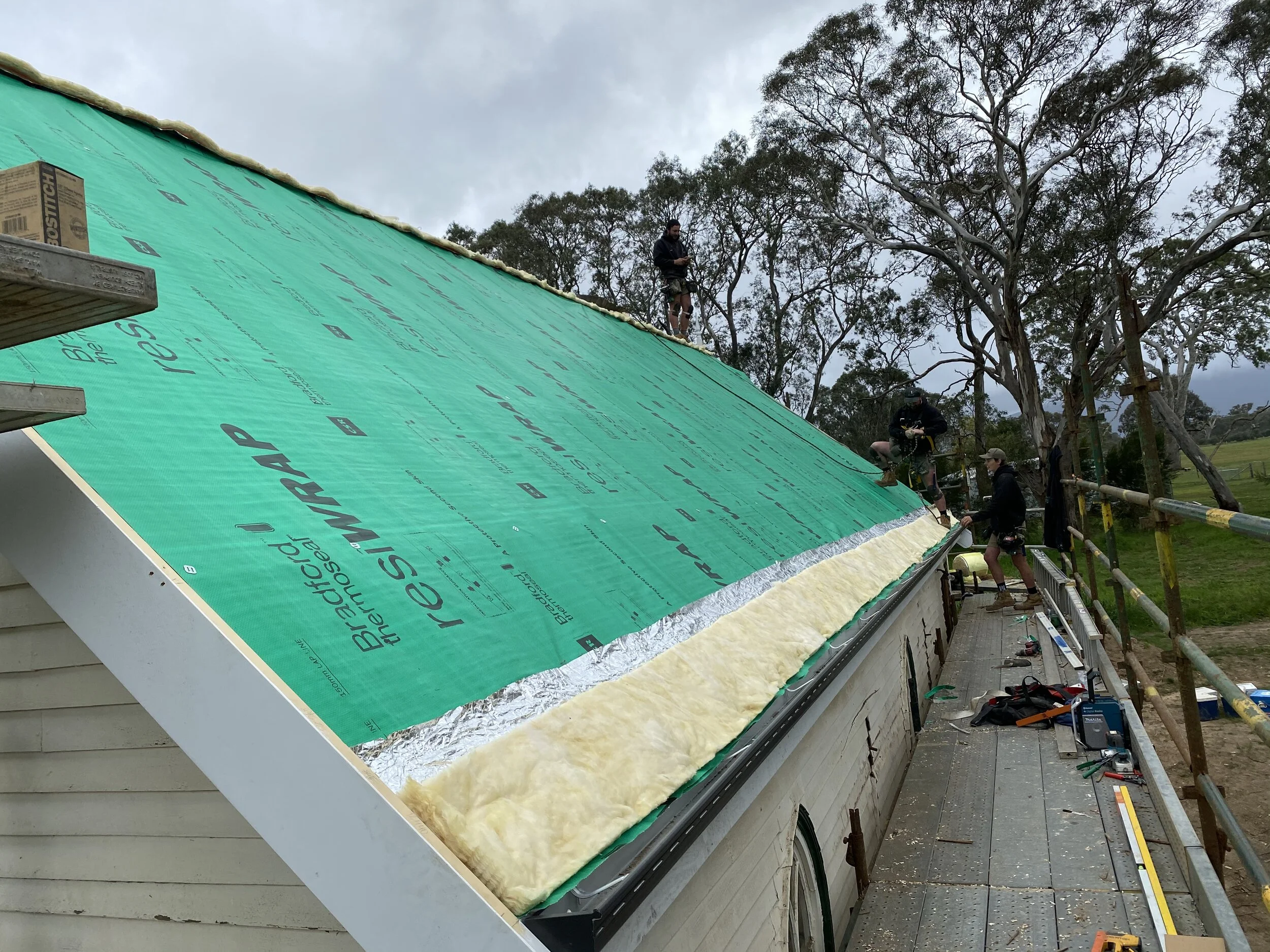 The roof needed battening out to get a nice line on it and then came the insulation and the iron (Monument in colourbond) and now she looks swisho! Plus she got new finials- I think they are my favourite part.