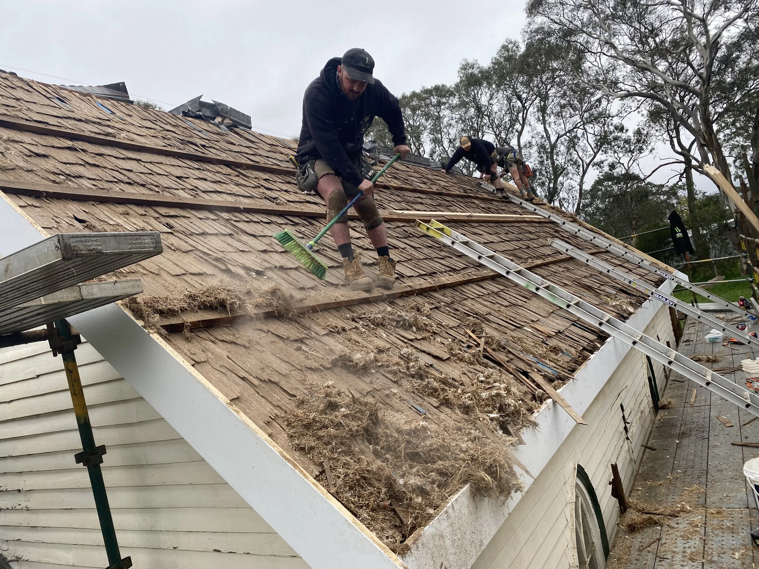 The fascia also got replaced and then the old tin was removed to reveal all the original shingles. It was so fascinating to see how she would’ve once looked! It also blew my mind how steep the roof is. How they did this 145 years ago I do not know!
